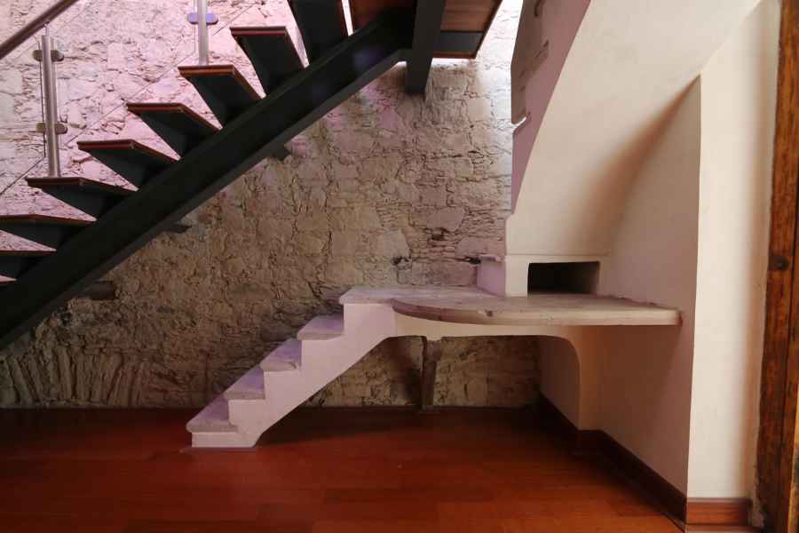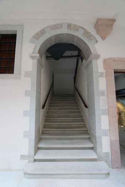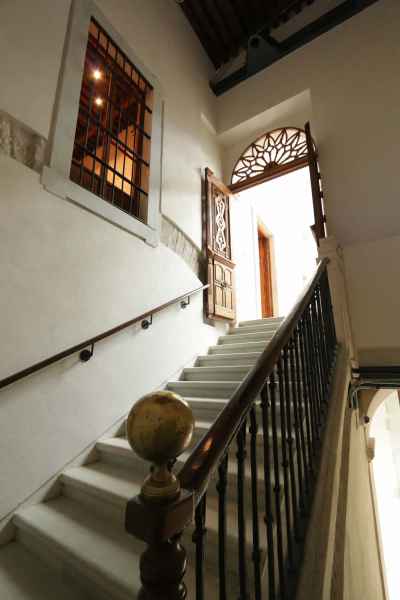 Los vanos en planta alta están unidos por un balcón continuo soportado por ménsulas de cantería de cuartón verde de la región, y corresponden a las áreas públicas de la casa familiar y son, por este hecho, más elaborados que los de la planta baja, presentando los cruces de jambas y cerramiento una molduración perimetral, así como un rosetón tallado. Este cuerpo está rematado por un doble friso que sostiene la cornisa, probablemente para atenuar la gran altura del segundo nivel y su pretil, igualando su proporción a la del primer cuerpo.