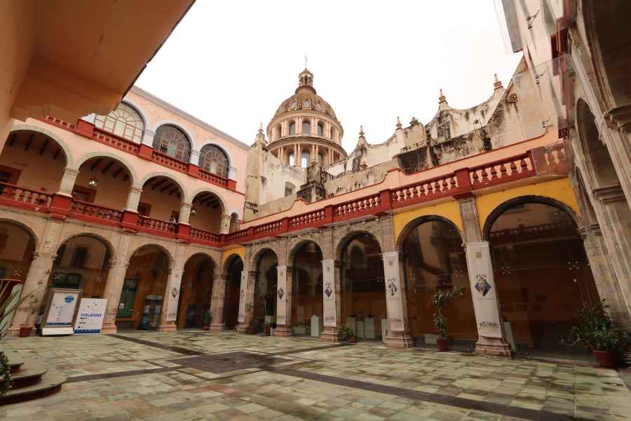 El Edificio Central integró al inmueble que ocupaba el Colegio del Estado y que se fundó sobre la antigua casa de la benefactora Doña Josefa Teresa de Busto y Moya, y que ya previamente se había expandido al patio del antiguo oratorio de la Compañía de Jesús, y lo amplió hasta donde comienza la subida de la Calzada de Guadalupe, ocupando en el proceso a la capilla del otrora hospital de Indios Mexicanos, ahora Salón del Consejo Universitario.