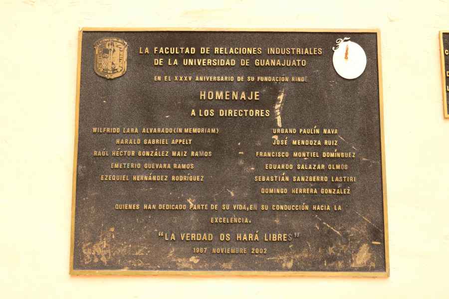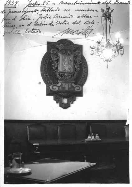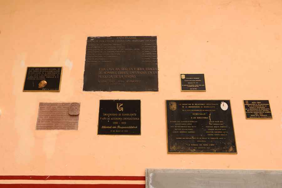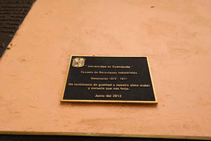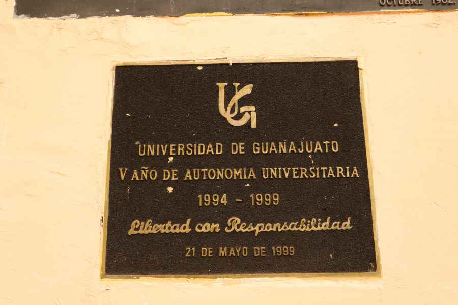 El 25 de julio de 1939 se descubrió en el lugar un escudo de Guanajuato tallado en madera, elaborado por el Lic. Julio Amado Martínez. Este escudo permanece resguardado por la Comisión de Bienes Preciosos de la Universidad.